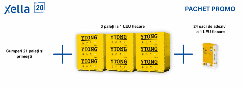 La 21 paleți cumpărați primești 3 paleți la 1 LEU fiecare + 24 saci de adeziv la 1 LEU fiecare.